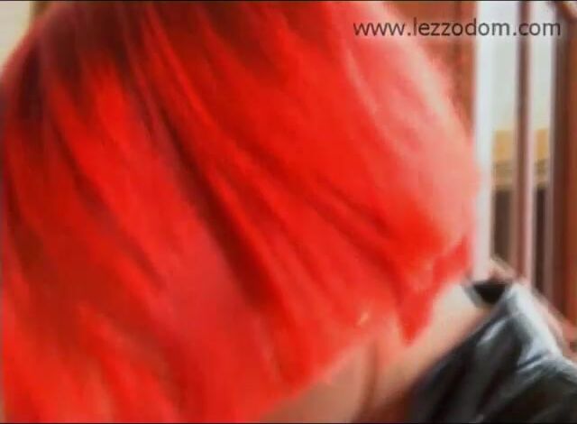 Mistress dolled up in black shiny latex roughly fucks long-haired lesbian cutie in all holes