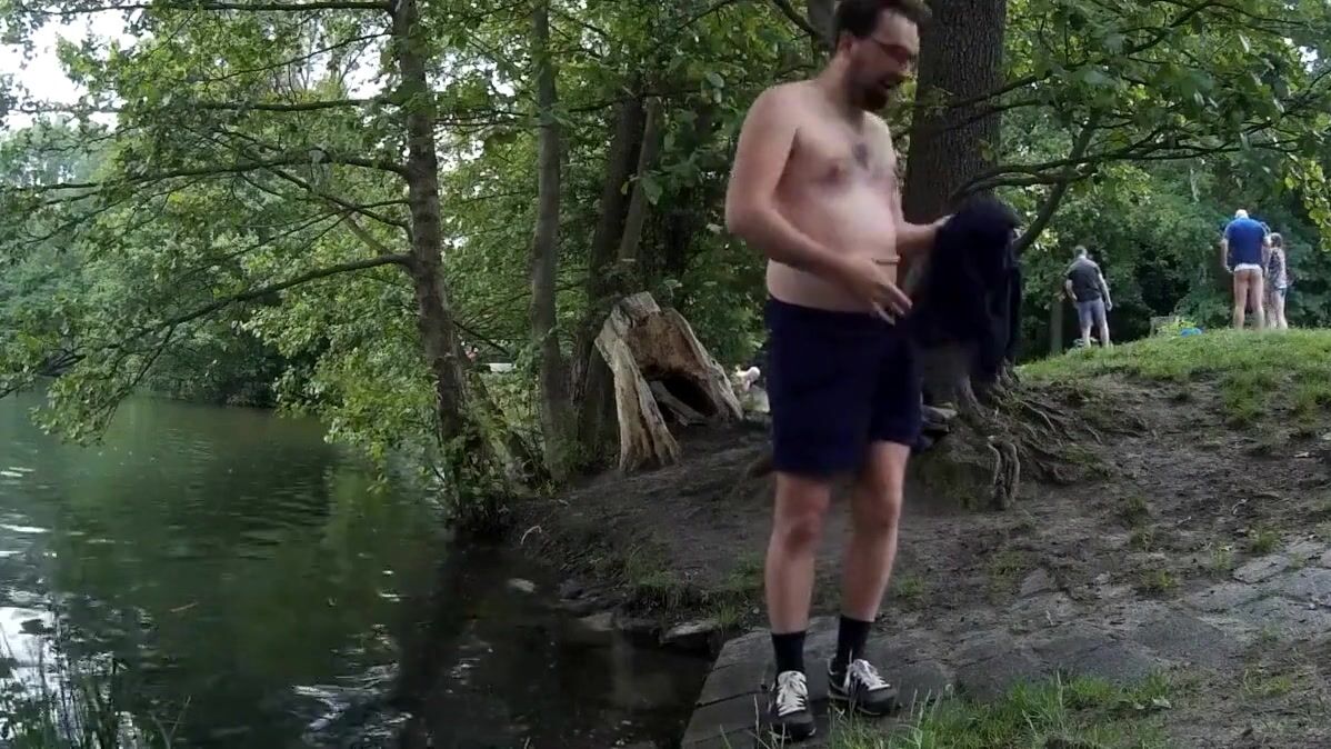 Skinny-dip in public, getting caught naked, cum outdoors