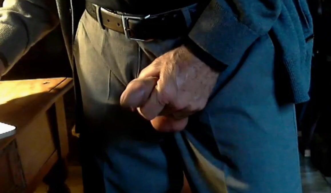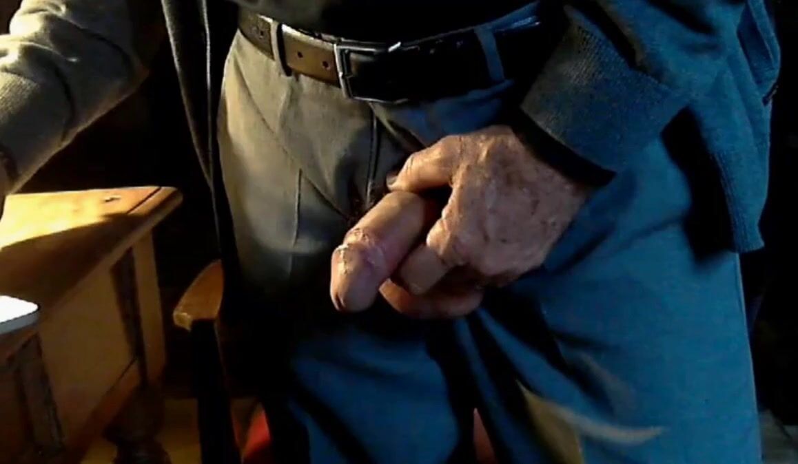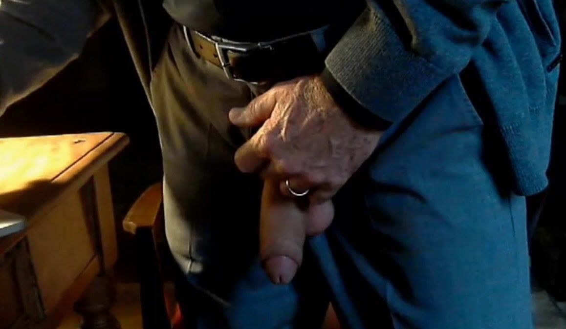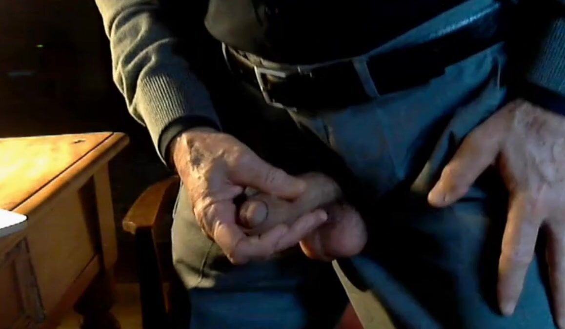 Old grandpa on cam playing with his nice, thick, uncut cock