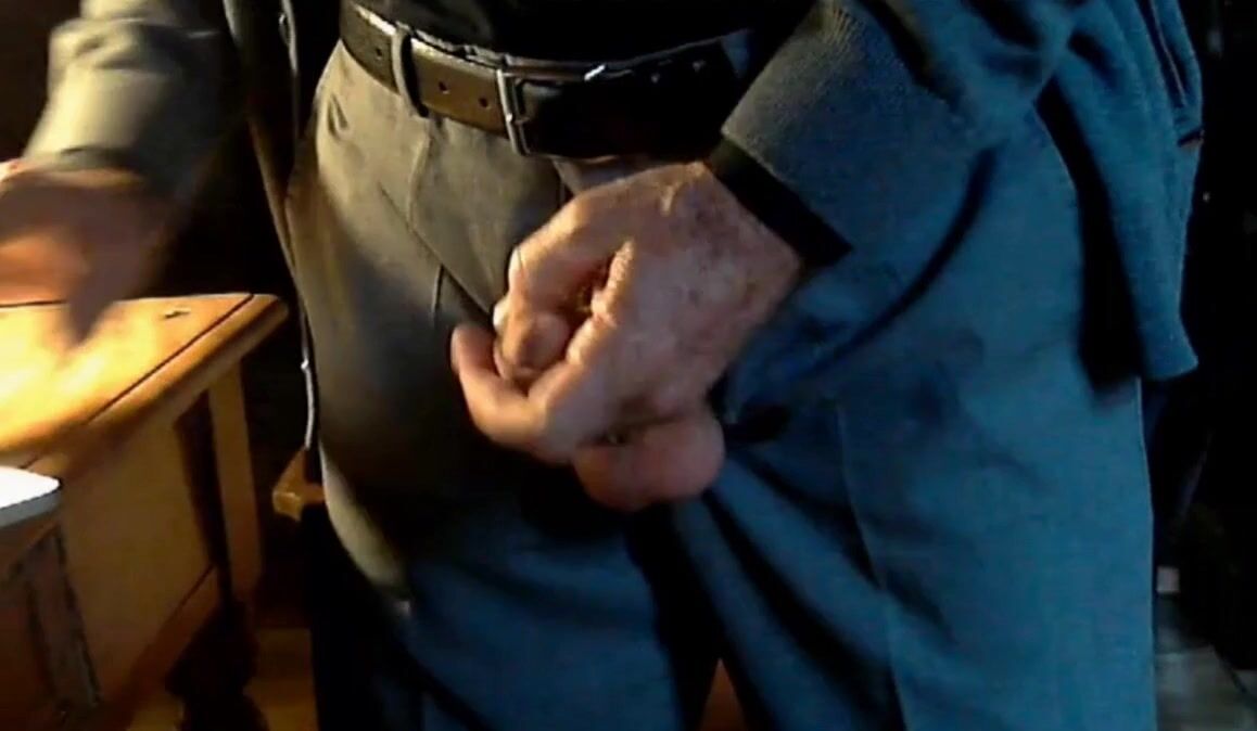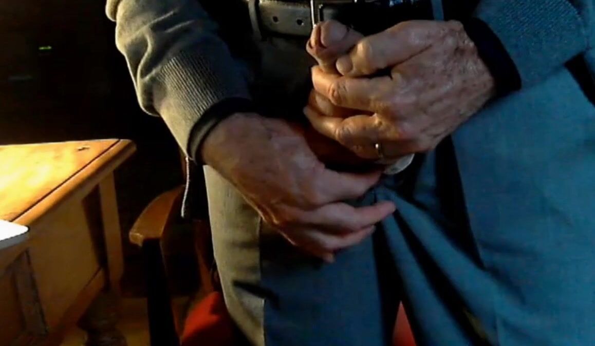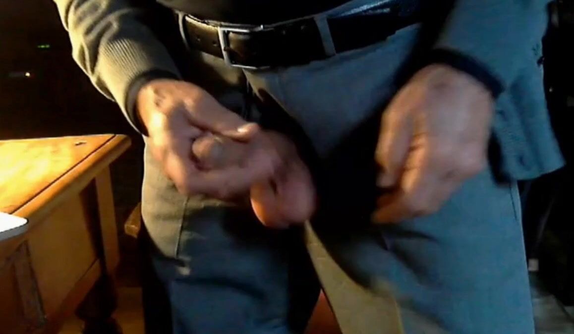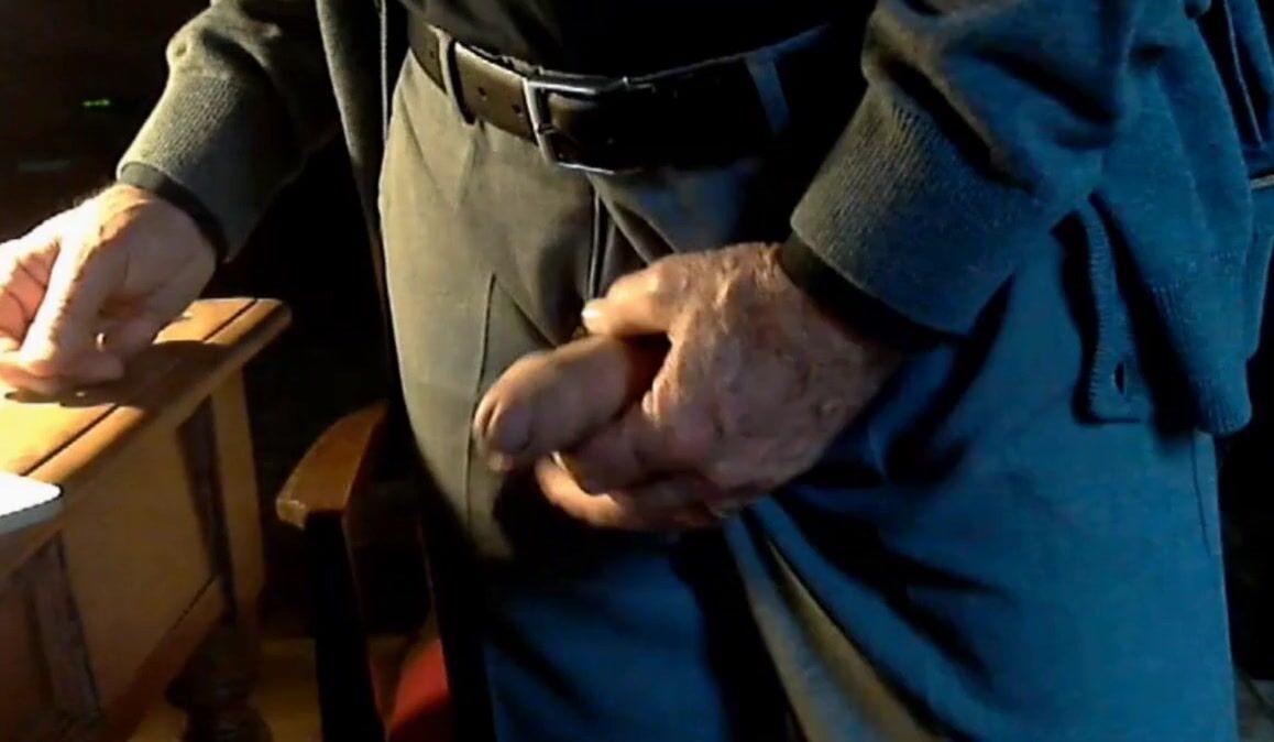 Old grandpa on cam playing with his nice, thick, uncut cock