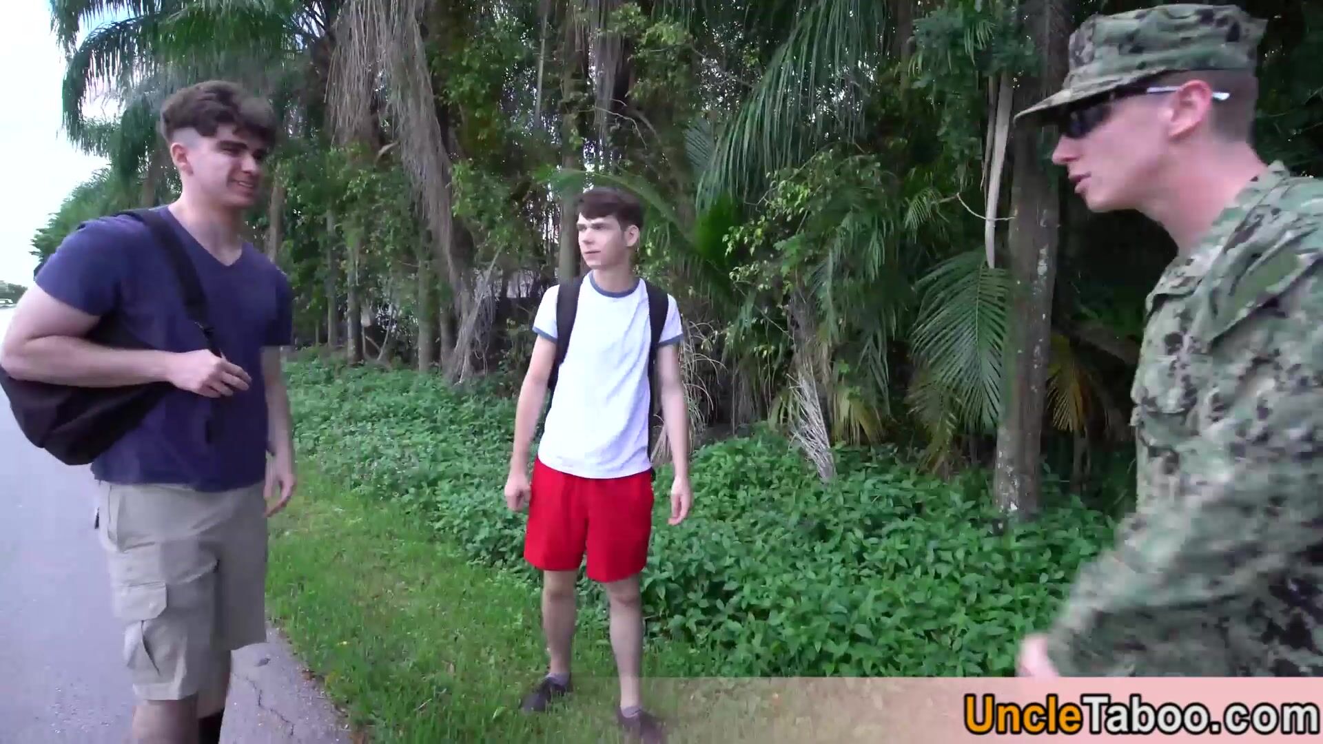 Muscle teens Daniel Dean and Dakota Lovell get a unique trainin by a horny soldier Rowan outdooor who lures them into threesome fuck Thex has to suck his big dick then he is fucking bareback them one by one during they gicing a blowjob to each other