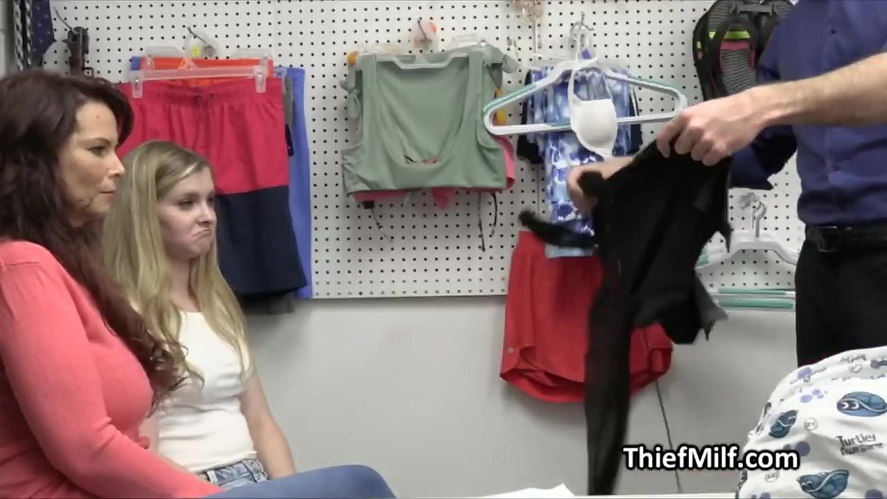 The hot busty teen was hiding the stolen merchandise in her fake belly. They are pretty clever but the security guy was a lot smarter then them!