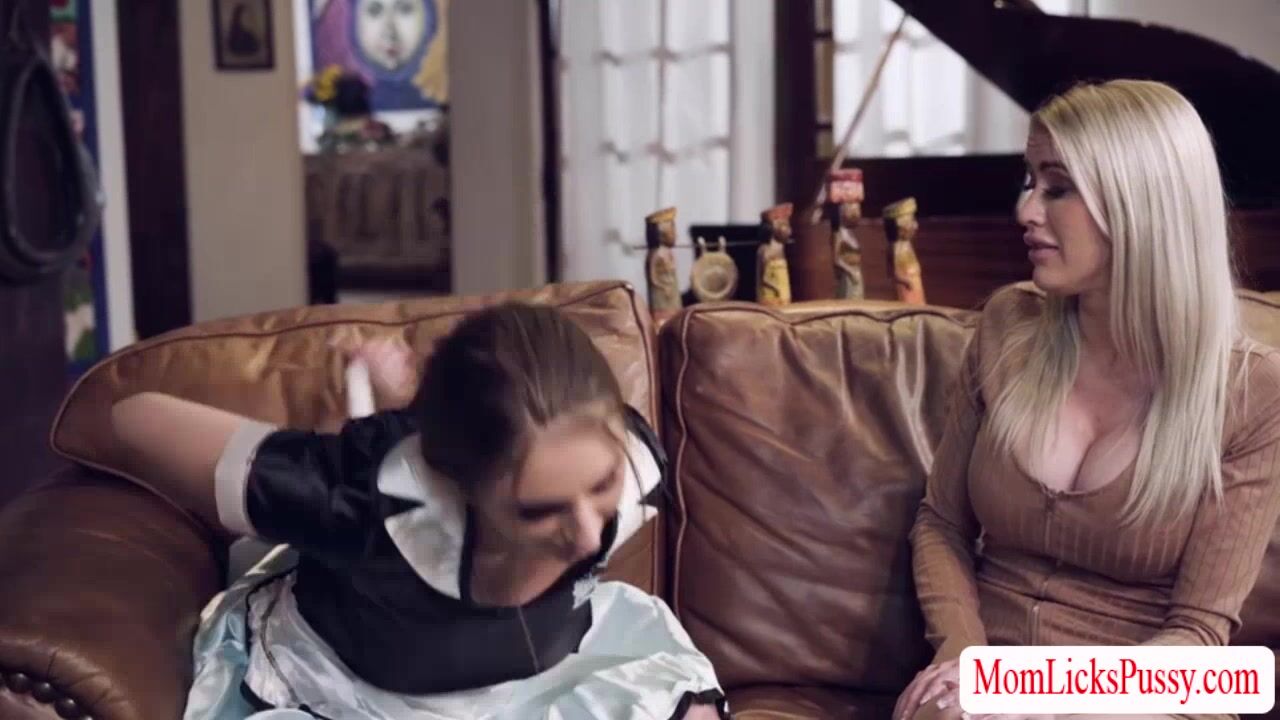 Busty milf knows the reason why her stepdaughter get home late everyday because she has a partime job.After that,she comforts her stepdaughter and they start getting naked and lets her stepmom lick her tight pussy.