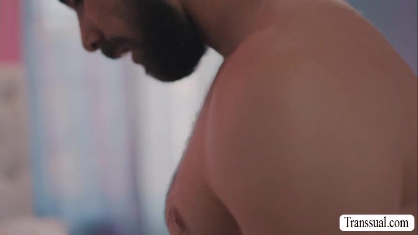 Horny shemale lets her guy friend watch while shes toying her wet ass.After that,she lets her friend come in and put his dick inside her wet ass.Next is,she throats his big cock and puts it back inside her ass.