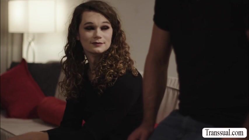 Curly shemale gets her ass licked and banged by new stepdad