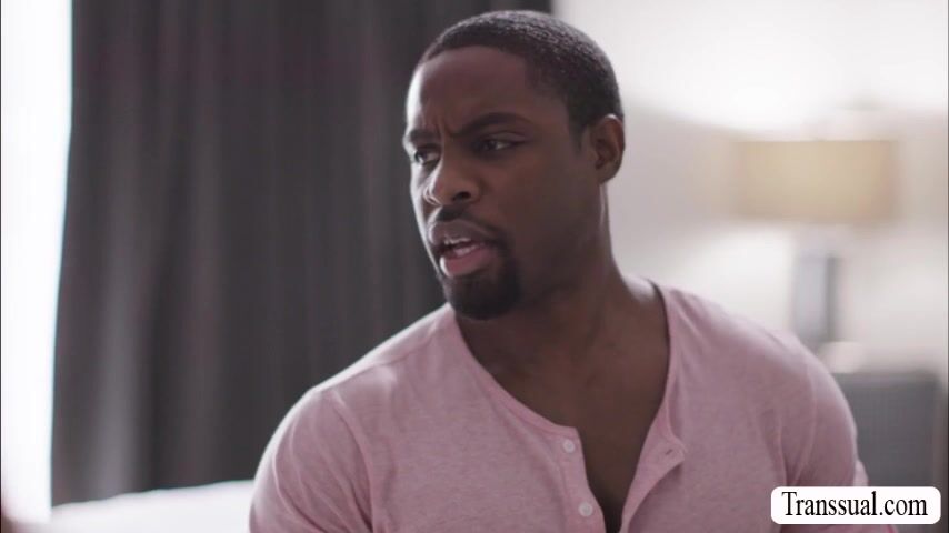 Curvy blonde TS calls her black guy friend to fix her kitchen sink.After that,as a thank you they start kissing each other on the bed.Next is,she throats his black big cock passionately.In return,the guy fucks her wet ass o hard.