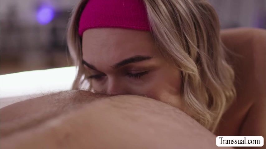 Hot trans babe is doing yoga with a pervert guy and after that,they both get naked and she lets him suck her shecock passionately.In return,she licks his ass first to makes it wet before she fucks it so deep and hard.