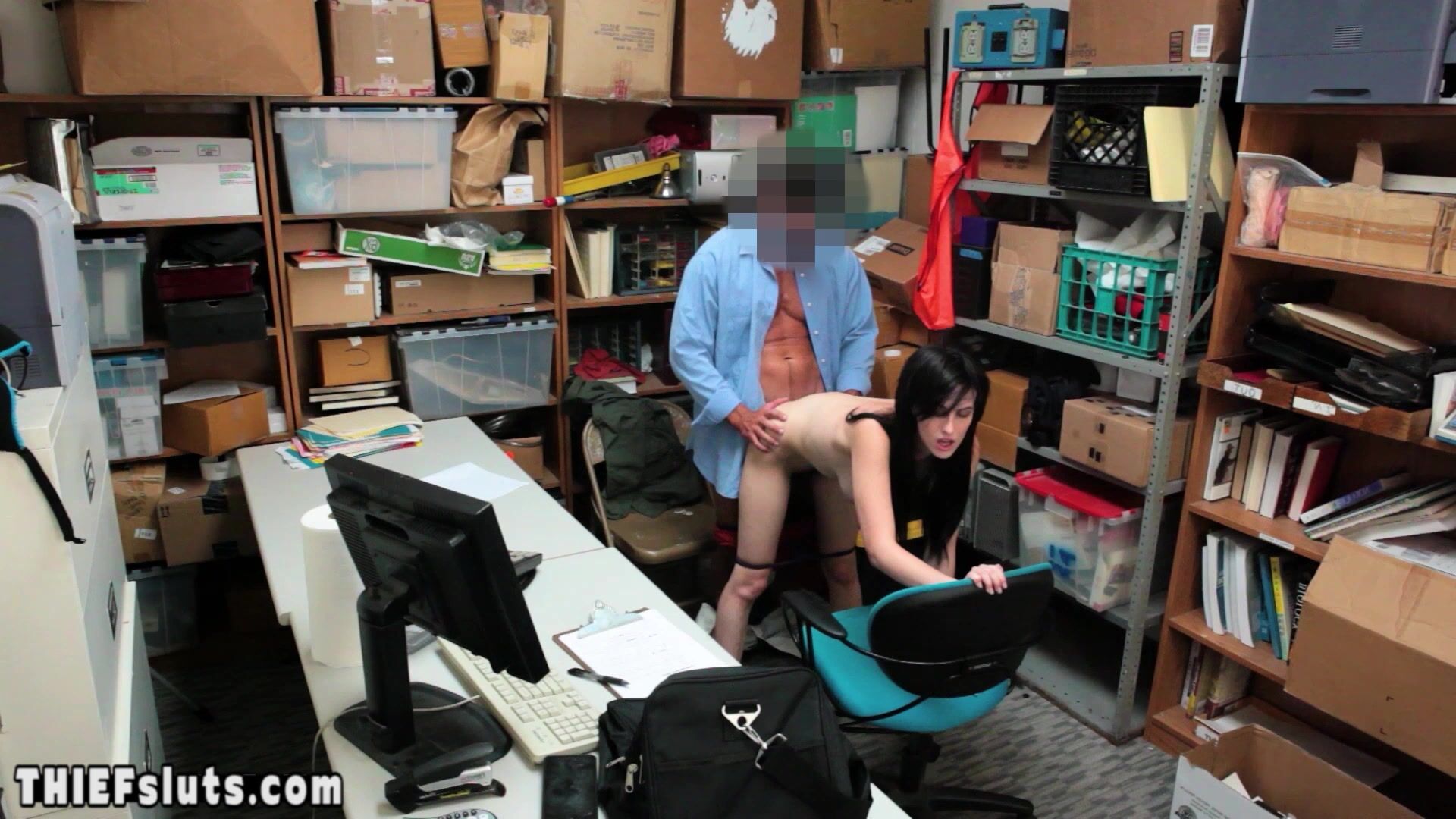 Skinny brunette teen shoplifter Alex Harper with big boobs gets on her knees and starts sucking a LP officers big cock after the interrogation and lets him to fuck her pussy to propitiate him and avoid jail