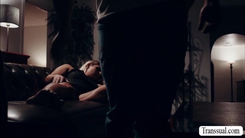 Pervert stepbro jerks off in front on his shemale stepsister while shes taking a nap.After that,he go to his room and his stepsister follows him.She starts sucking his big cock passionately and in return,he fucks her tight ass so hard.