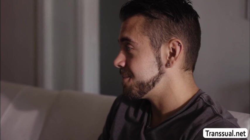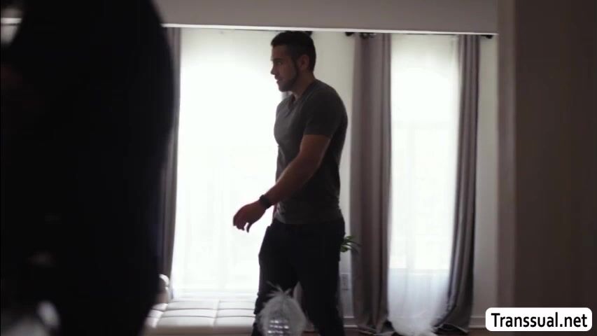 Slut trans babe seduces the guy friend of her stepbro while he is out.She lets him stay in her room and they start kissing each other.After that,she throats his big cock passionately and in return,he fucks her wet ass o hard.