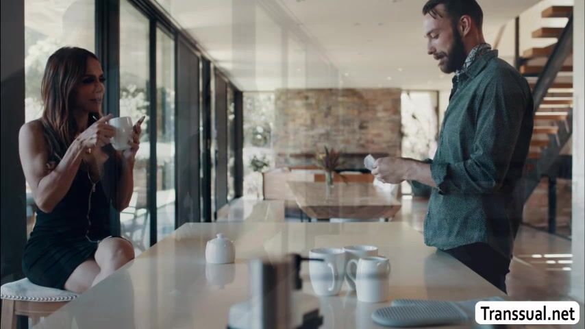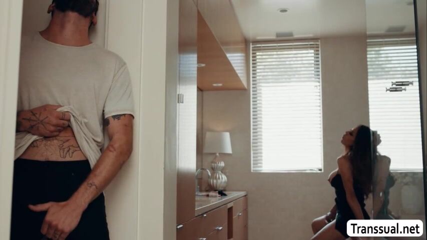 Busty shemale is in the bathroom so horny and she then start masturbating her shecock.After that,her stepson watches her and she then throats his big cock passionately.In return,her stepson fucks her tight wet ass so deep and hard.