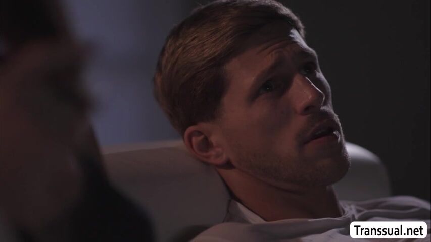 Busty shemale and her stepbrother are on the couch watching tv shows.After that,they get horny and she then throats his big cock passionately.Next is,they move into her room and she lets him fuck her wet ass so deep and hard.