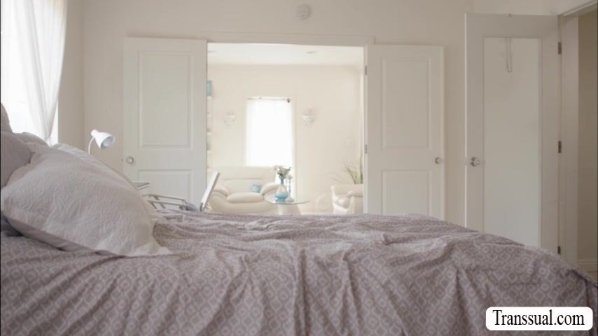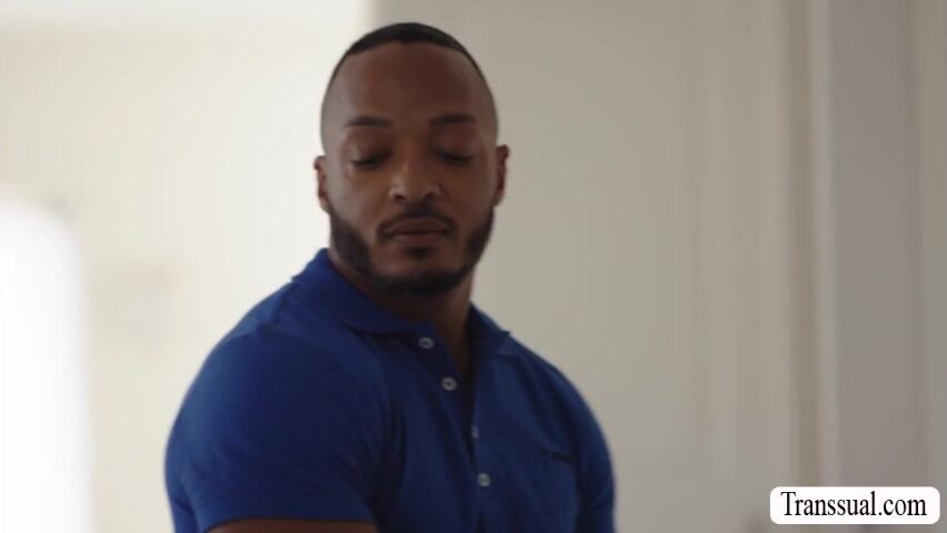 Black stepbro enters the room of his shemale stepsister while shes changing clothes.After that,they start kissing each other on the bed and he lets her throat his big black cock passionately.In return,he fucks her wet tight ass so deep and hard.