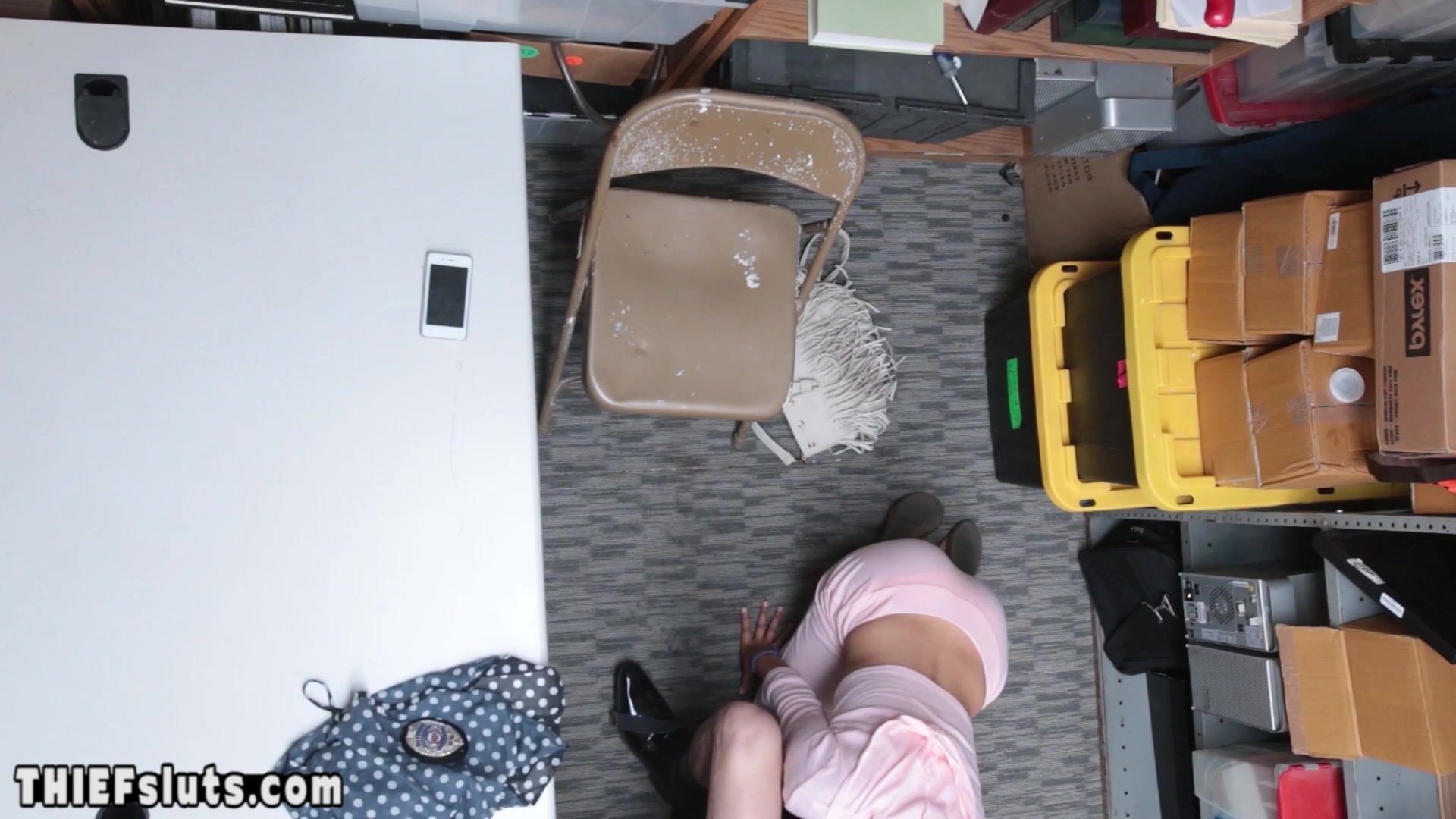 Petite brunette latina teen shoplifter Kat Arina with small tits and pierced nipples got caught and strip searched by a dirty LP officer He ordered her to suck his hard dick then he fucked her shaved hispanic pussy on CCTV exchange her freedom