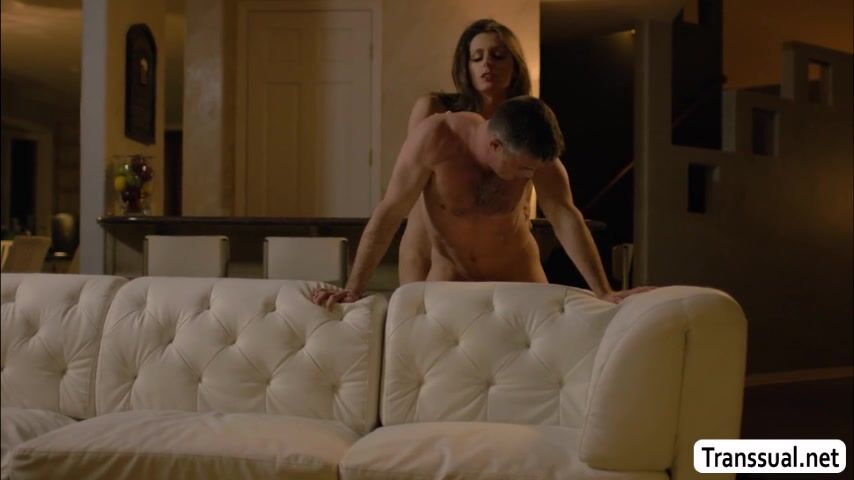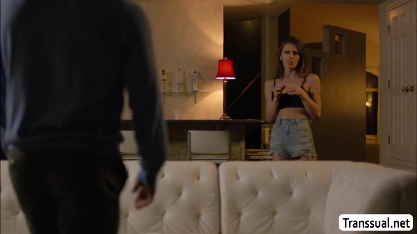 Stepbro goes to the house of her trans gender stepsister and they talk for a while on the couch.Next is,they start kissing each other and she throats his big cock passionately.Next is,she licks his ass first before she fucks it.