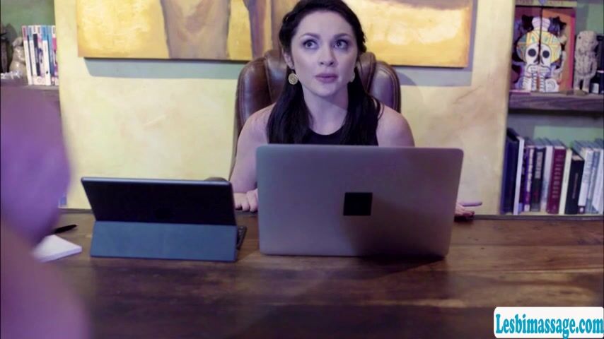 Busty brunette and her ebony girlfriend are in the massage parlor and they avail their couple gift check.After that,they get horny and she get naked too.Next is,she lets her two customer lick her wet pussy so hard.