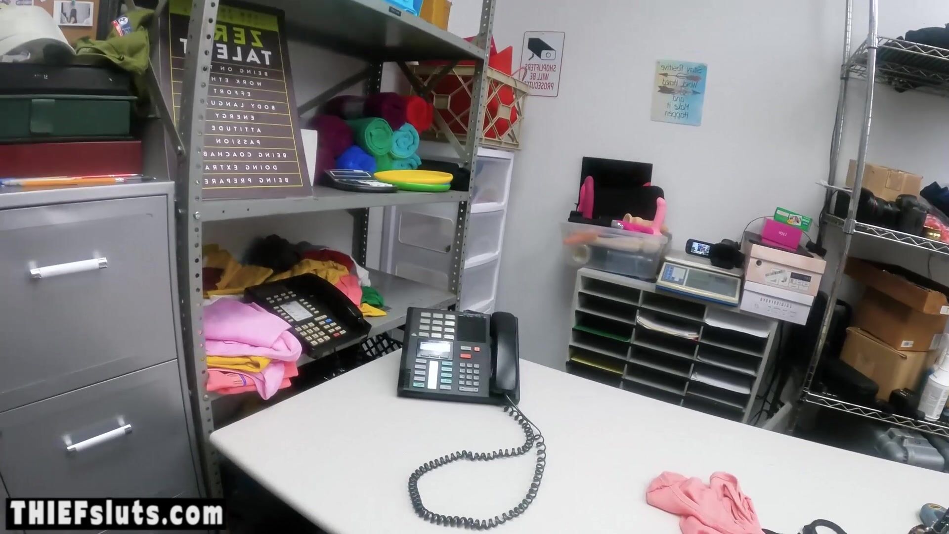 Scared brunette teen thief Penelope Kay with big boobs gets a full cavity search by a LP officer the he ordering her to get on her knees and suck his big dick then he is anal fucking her to teach her the rules