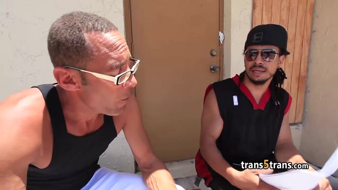 Skinny tgirl take two giant cocks