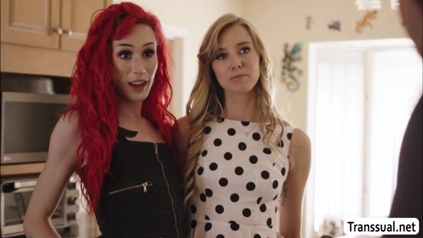Hot shemale and her girlfriend fucked by real estate agent