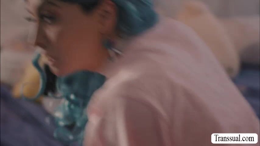 Horny trans woman lets her guy neighbor toy and fuck her ass