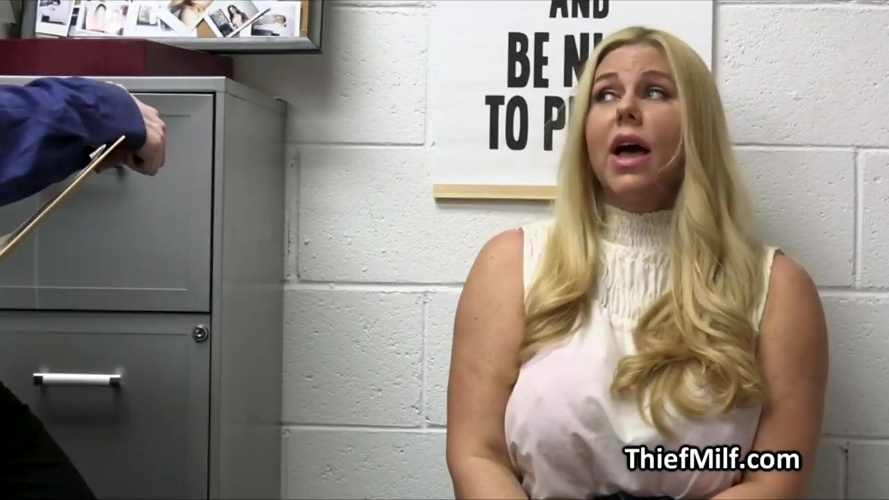 Alex catches a really curvy one today. This blonde MILF was busted for stealing jewelry and now it's time to make up for her sin.. at the backroom!