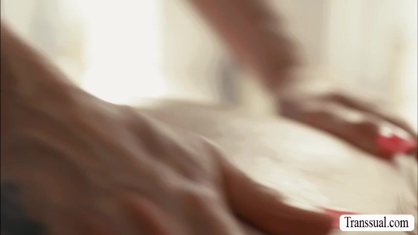Busty trans masseuse lets her shemale client get naked and she then starts massaging her body.Suddenly,she gets horny and start sucking the shecock of her client.Next is,she lets her bend over and she then fucks her wet ass so hard.