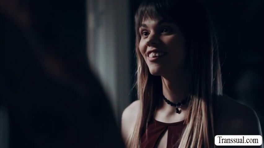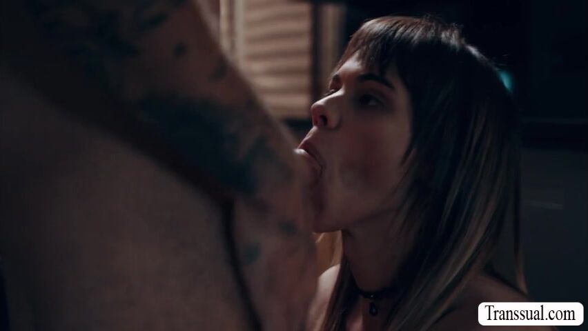 Slut smalltits shemale caught by her stepbrother sneaking in their house late at night.Instead of telling it to their parents,he lets her throat his hard cock passionately and in return,he fucks her wet ass so deep and hard.