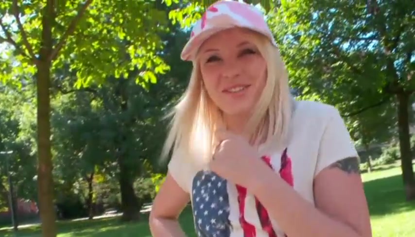 Blonde Lolita Taylor picked in the street and fucked in red sofá