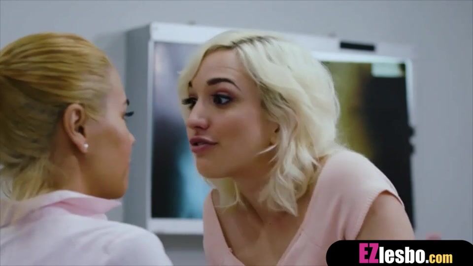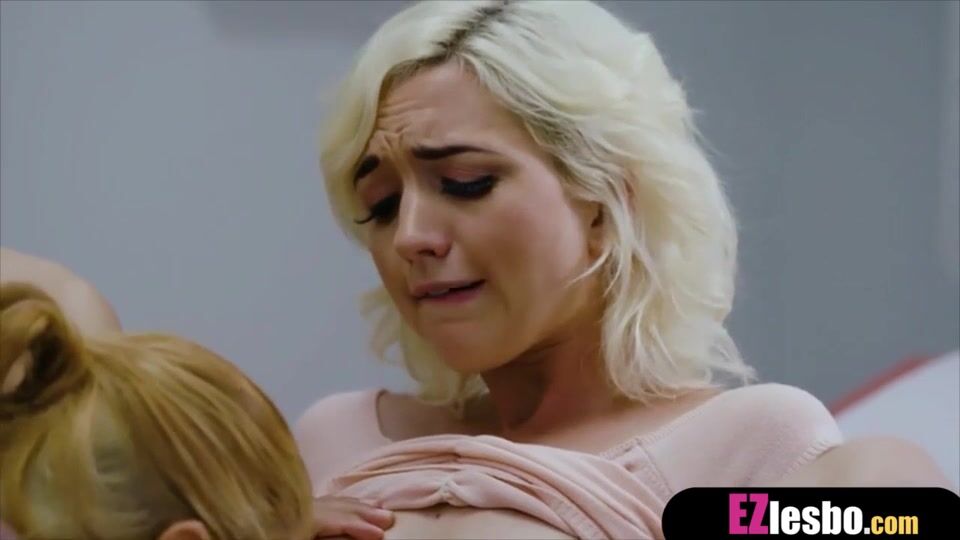 Blonde babe teasing big tits lesbian bff