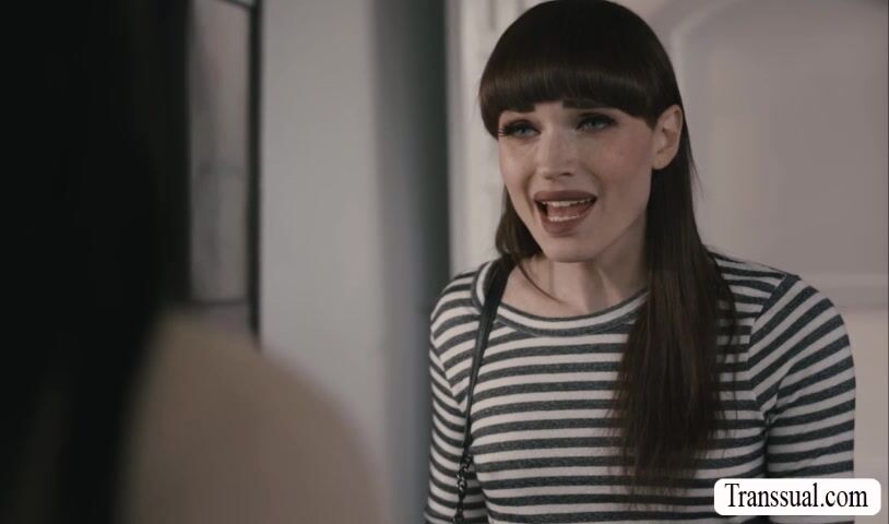 Brunette Tgirl goes to her milf friends house and tells her that shes engage.But instead of getting happy,her friends looks sad and disappointed.After that,she comforts her friend by kissing her passionately and she then licks and fucks her pussy.