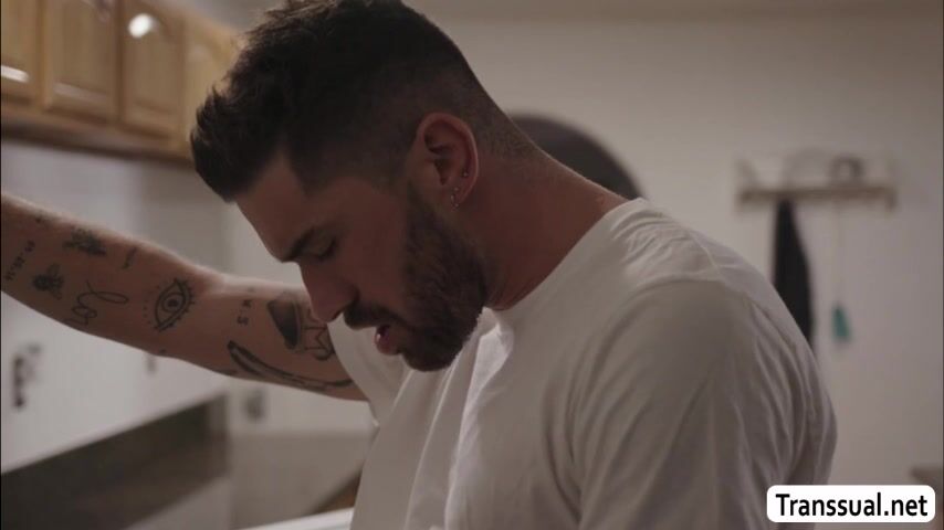 Horny trans babe seduces the friend of her stepbro to fuck her ass while they are playing video games.She lets him follow her and she then throats his big cock in the kitchen.In return,the guy licks her ass and fucks it so deep and hard.