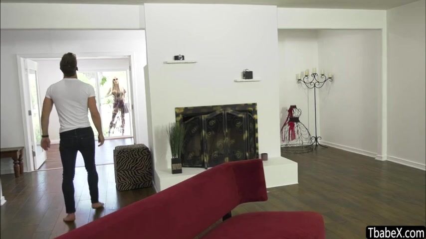 Busty blonde and tattoed trans woman visits her hunk friends house to flirt with and enjoy his cock up her mouth and asshole right in the couch.