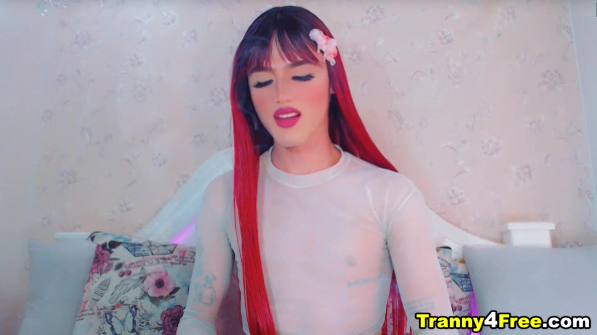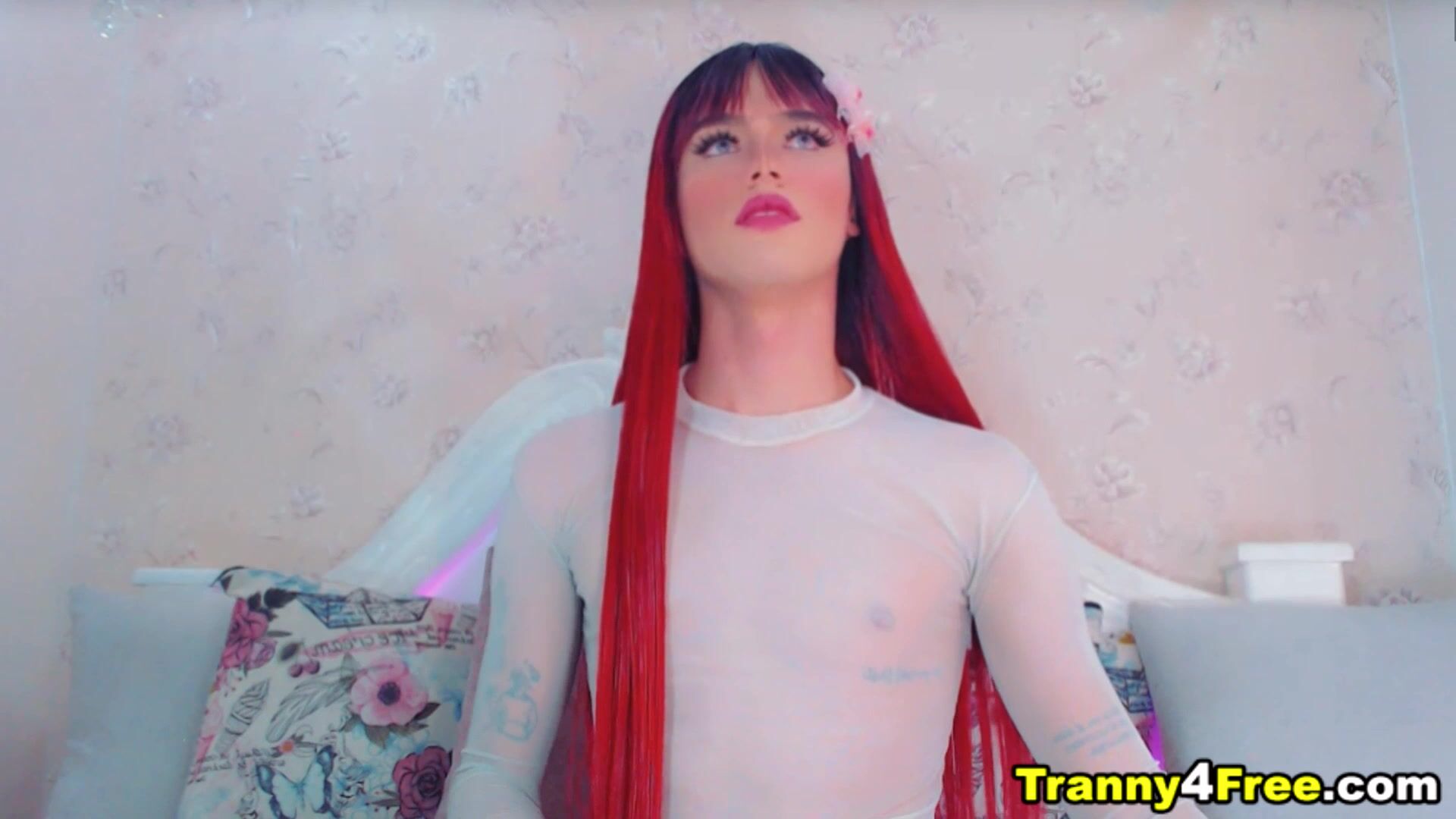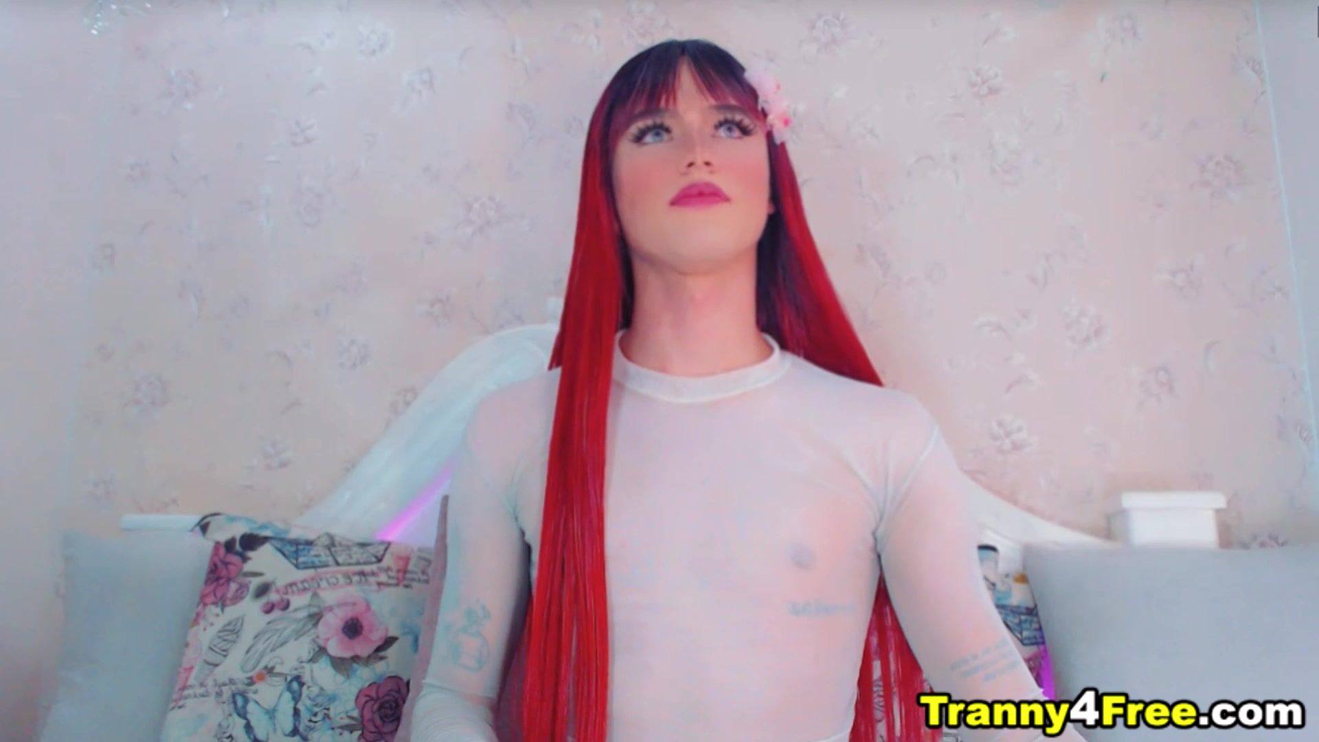 Red Hair Tgirl Gracefully Faps Her Dick