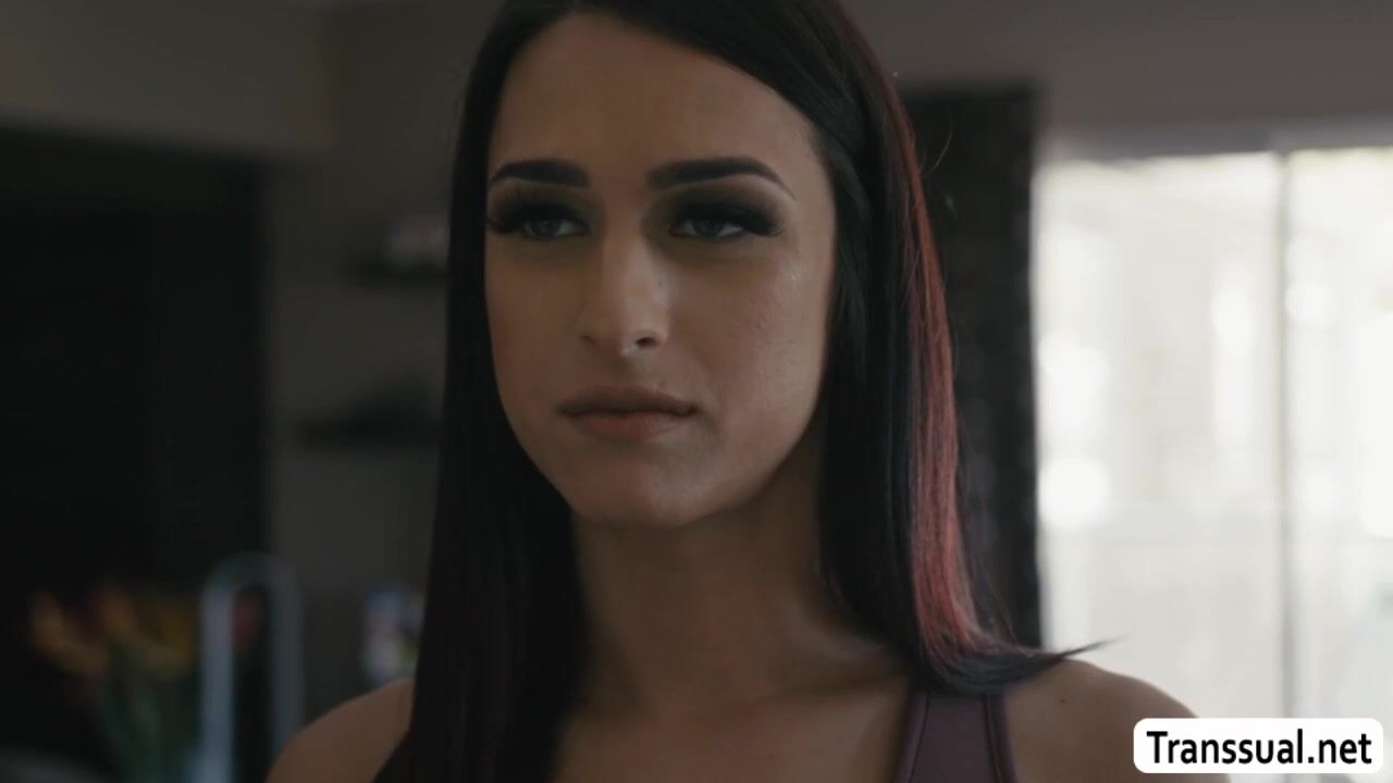 Shemale slut invites the bestfriend of her husband to come to her house.After that,the slut tranny seduces the friend of her husband and she then throats his big cock passionately.In return,the dude fucks the ass of slut tgirl so hard.