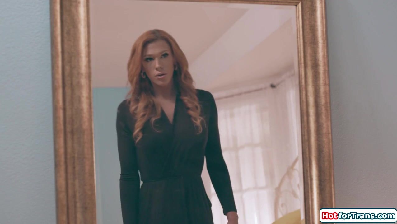 Small tits redhead Maya Kendrick sees busty shemale Aspen Brooks in the mirror.The big tits tgirl steps out and they kiss and suck each others boobs.The trans licks pussy and gets her big tranny cock sucked in a 69er.The ginger ts bangs the hot babe