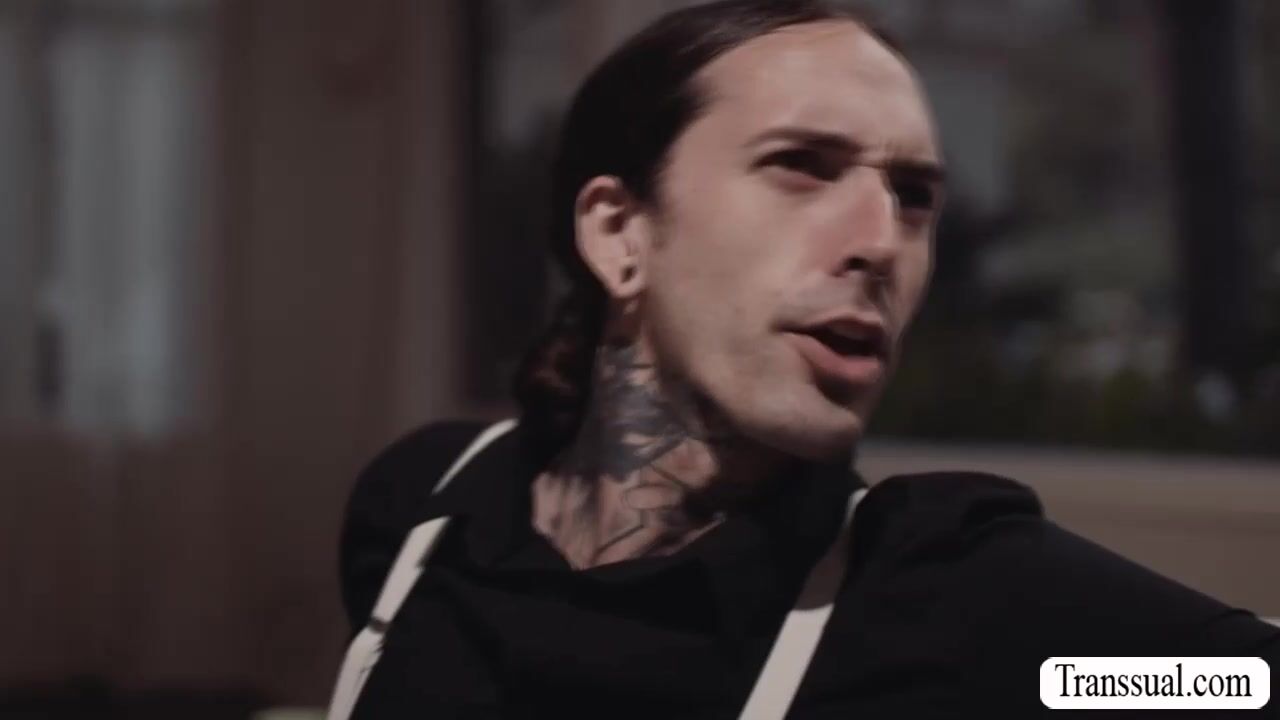 Busty shemale gets her ass licked and fucked by tattooed guy