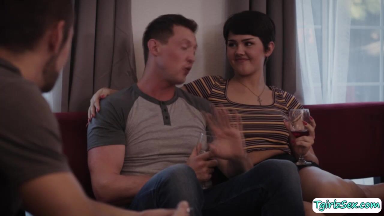 Trans Daisy Taylor flirts with her bfs best friend torridly kissing him then he suck her big tits while jerking his big cock. The brunette tbabes deepthroats while stroking her tranny dick then she stretches her big ass for hardcore anal barebacked.