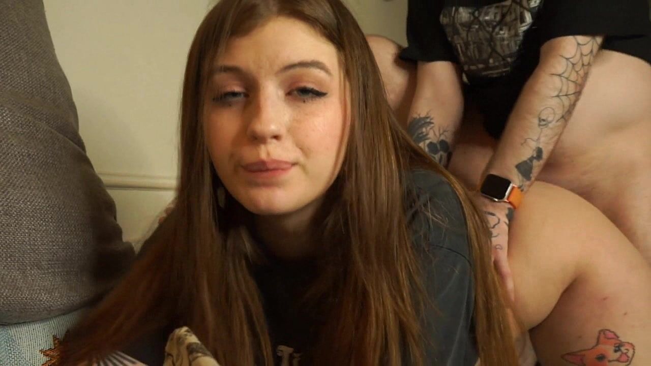 Horny teen couple hardcore sex at home. Tattooed man fucks teen girl hardcore in doggystyle position.