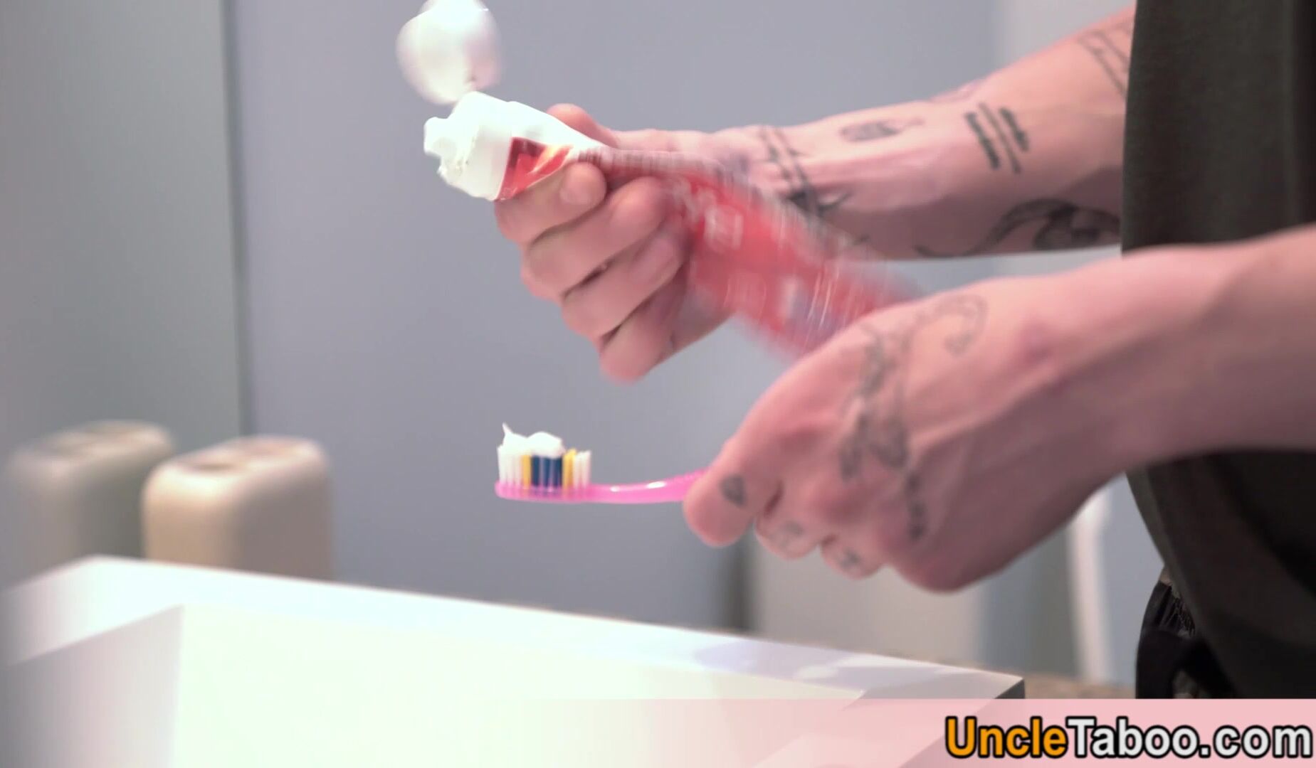 Pierced teen Marco Bianchi in glasses makes some noise what wakes up his muscle stepdaddy Manuel Skye The angry guy walks into the bath and ordering the twink to suck his big dick then he is fucking his tight asshole bareback in doggystyle