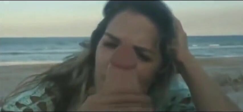 Girl lets her lover cum over her face at the beach 2