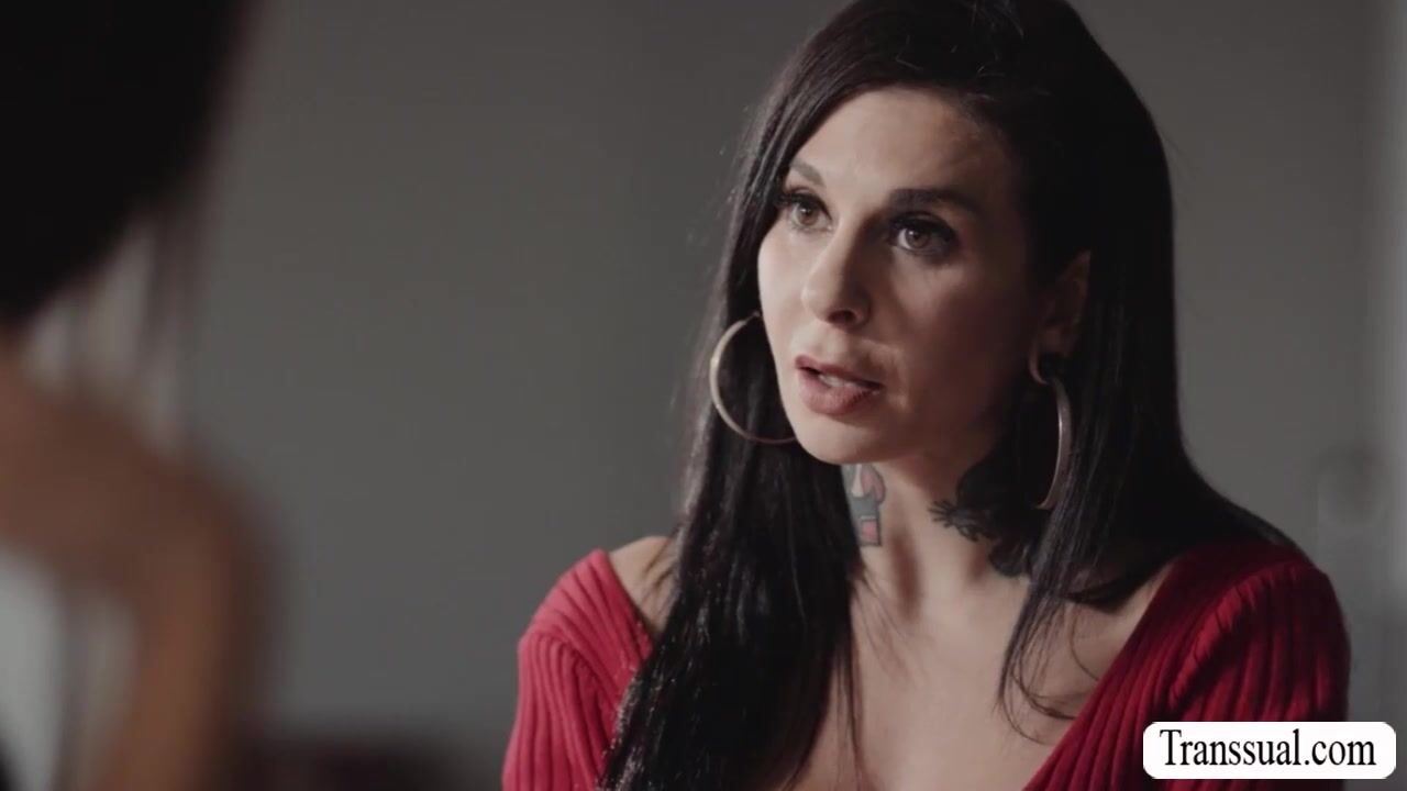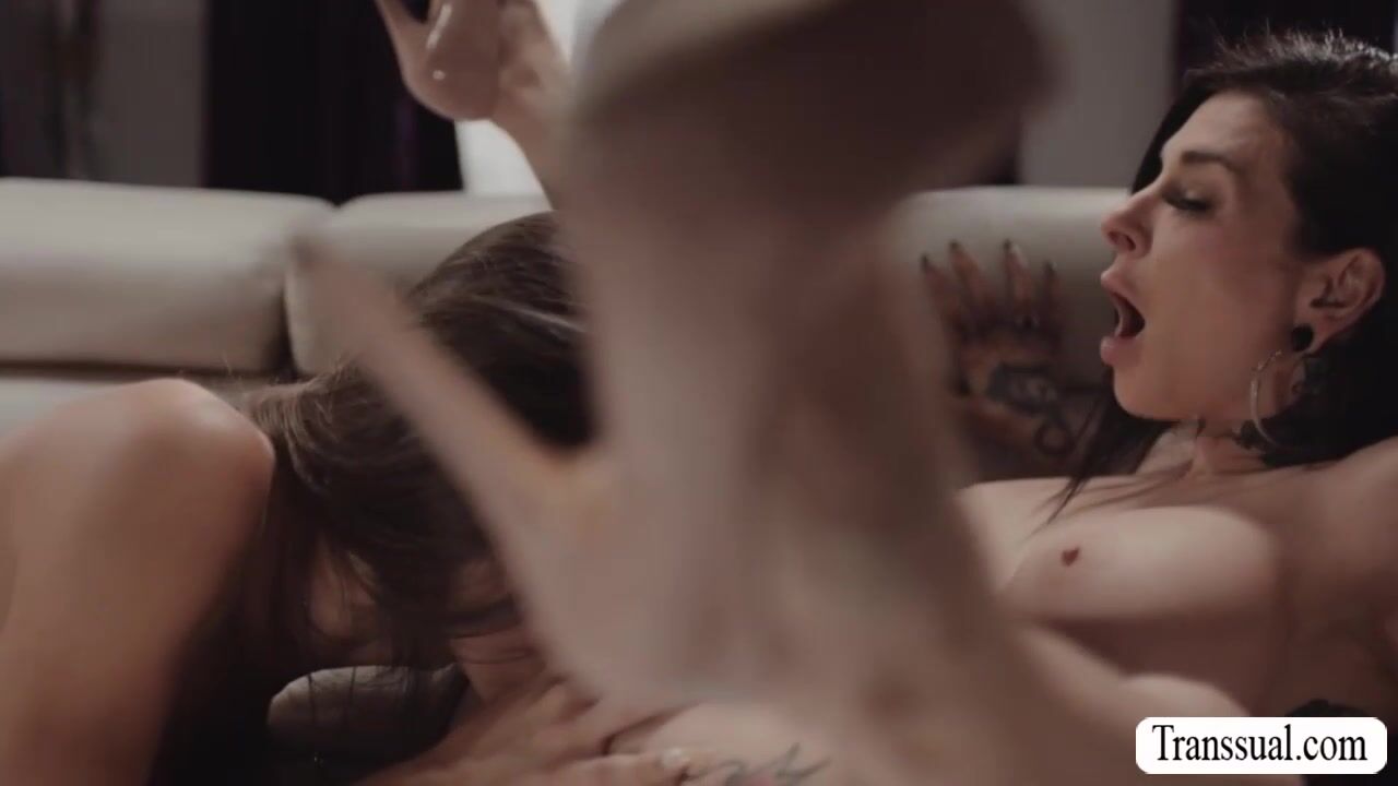 Shemale brunette and her busty tattooed stepmom are on the couch kissing each other passionately.After that,bigtits stepmom throats the tranny cock of her TS stepdaughter.In return,trans stepteen licks and fucks the pussy of her stepmother.