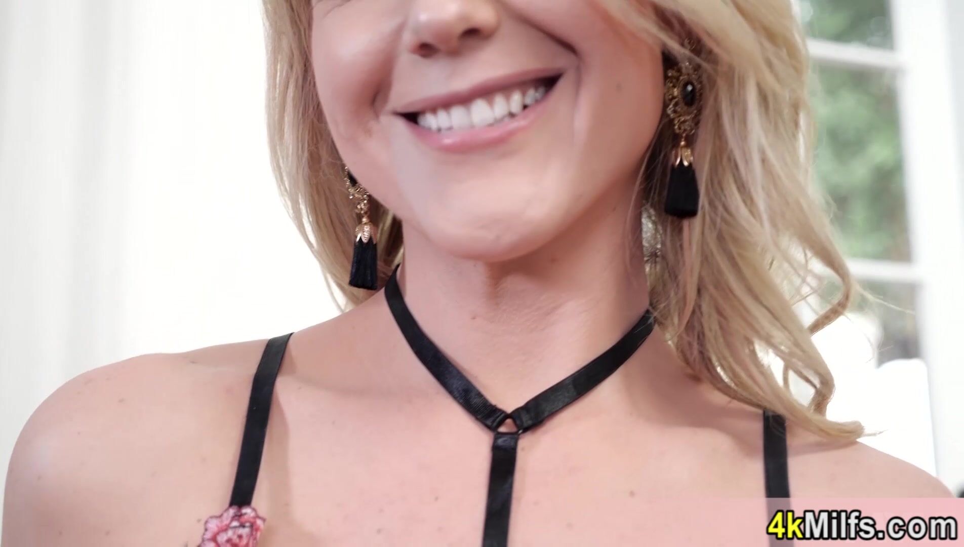 Hot blonde MILF housewife Kit Mercer with big boobs takes on her sexiest lingerie with stockings then she calls over her big cocked toyboy and ordering him to fuck and satisfy her shaved pussy