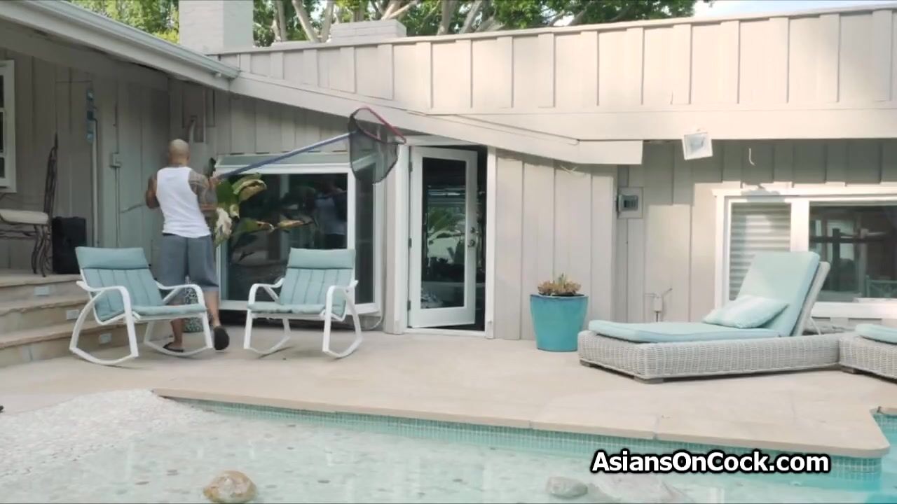 Asian bikini chick wants big dick by the pool