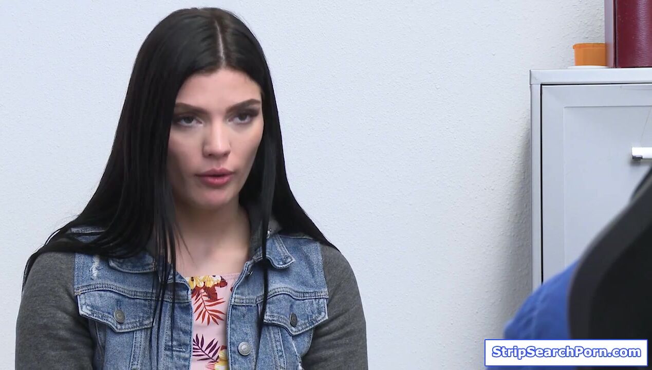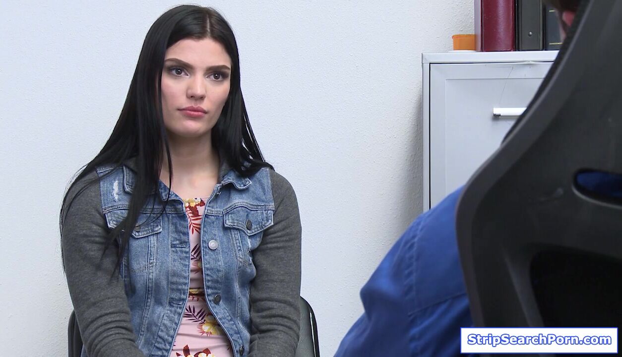 The security guard catches the store owners teen stepdaughter stealing.He takes her to his officer then conducts strip search.Afraid of her stepdad,the teen cooperates and gives what the officer wants.She blowjobs his big cock then lets him fuck her.