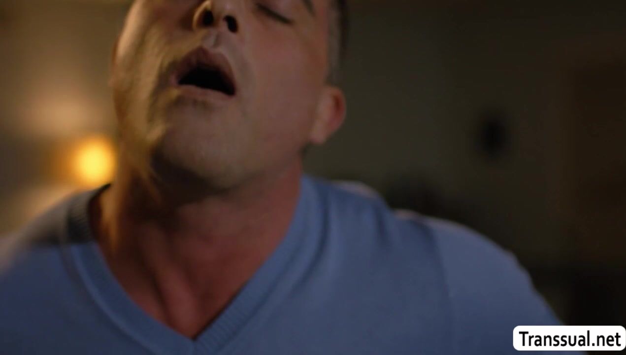 Gorgeous brunette TS and her new boyfriend are kissing each other passionately.After that,horny shemale goes down and throats the big cock of her boyfriend before she licks his tight ass and makes it wet and barebacks it so deep and hard.