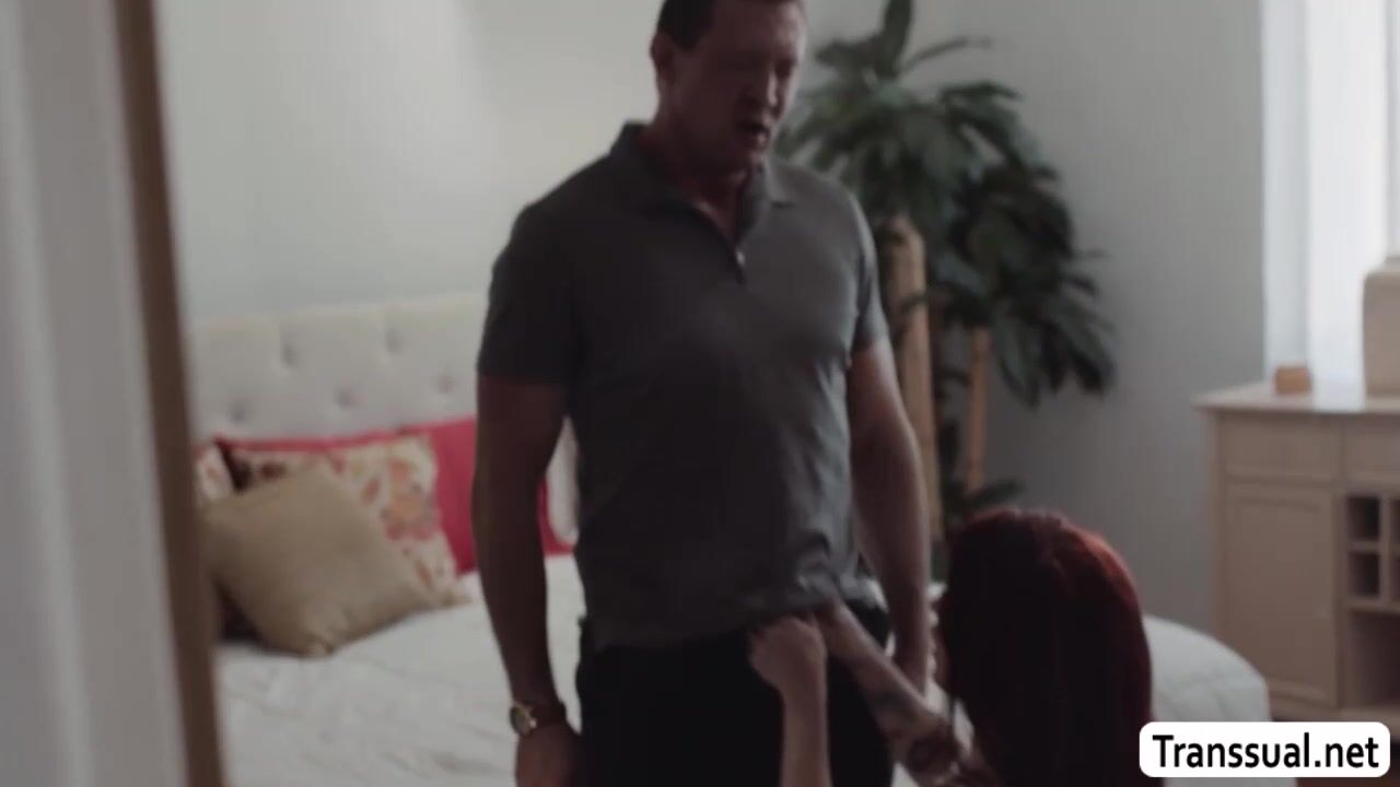 Slutty shemale caught by her stepdad wearing the clothes of her mom.Instead of getting mad,he lets his TS stepdaughter throat his big cock passionately and in return,he licks her ass first before he barebacks it so deep and hard.