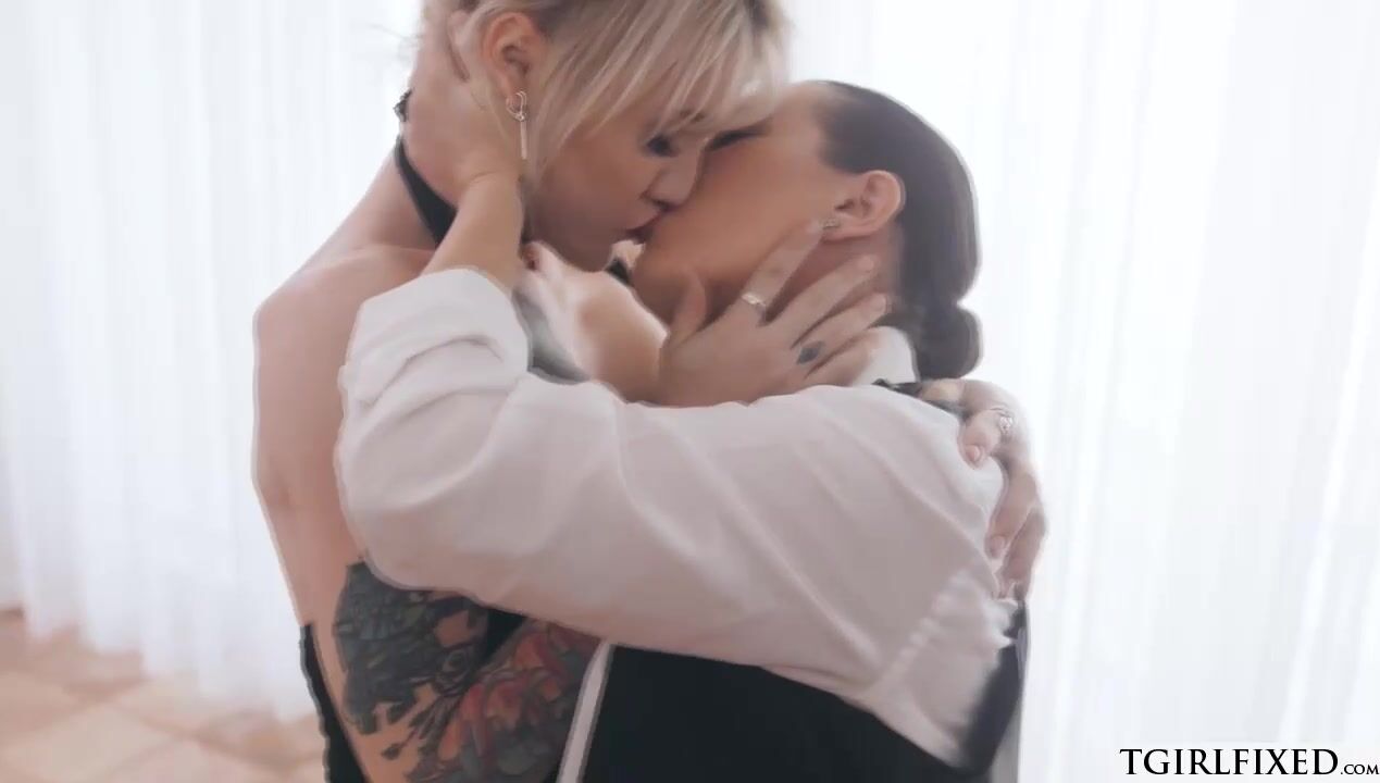 Busty tattooed shemale Lena Moon and female Sinn Sage exchange kisses.The big tits tranny sucks her strap on toy while the babe deepthroat blowjobs her ts cock in 69.The brunette babe fucks her asshole,and then the ts fucks her pussy.