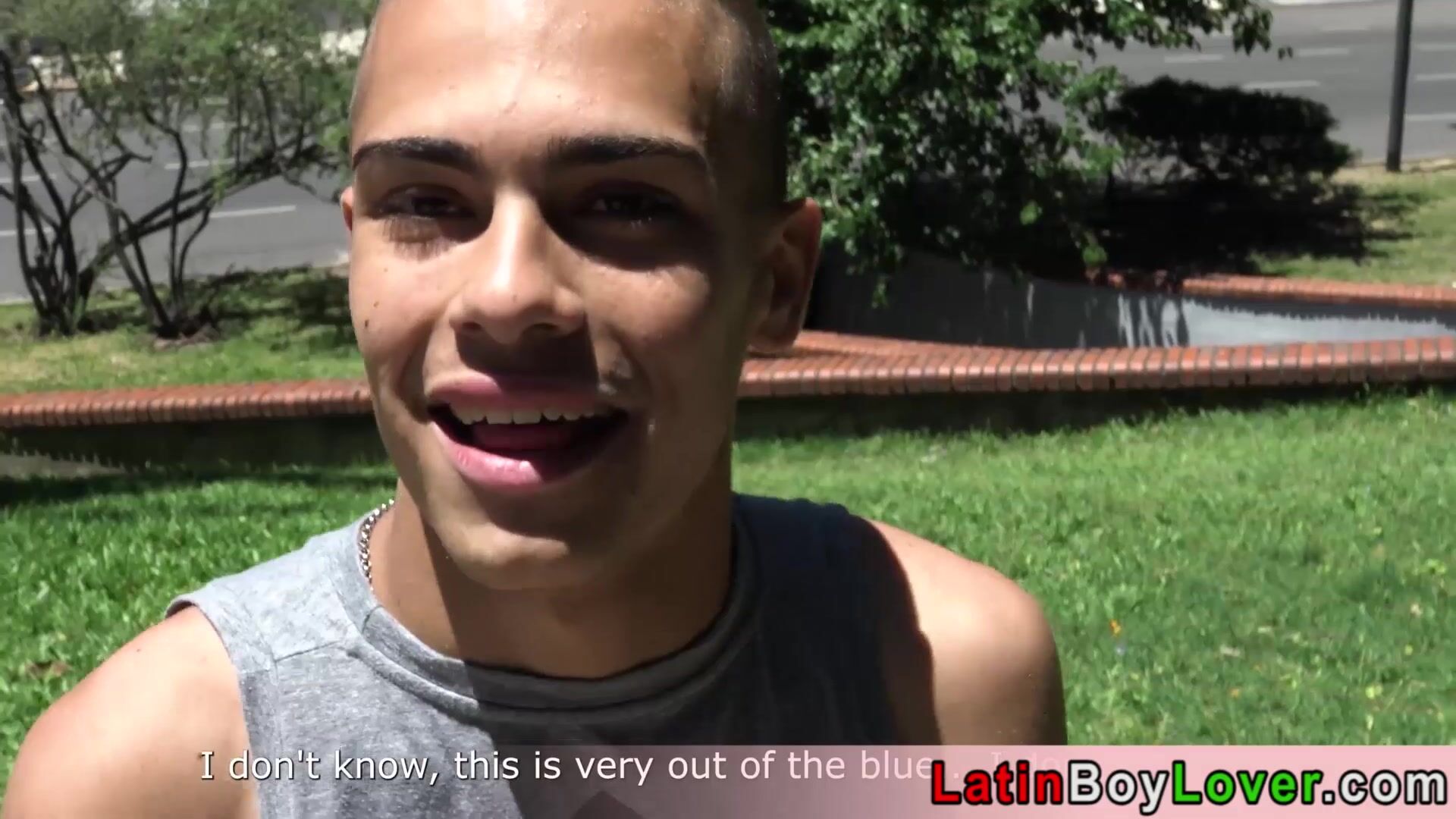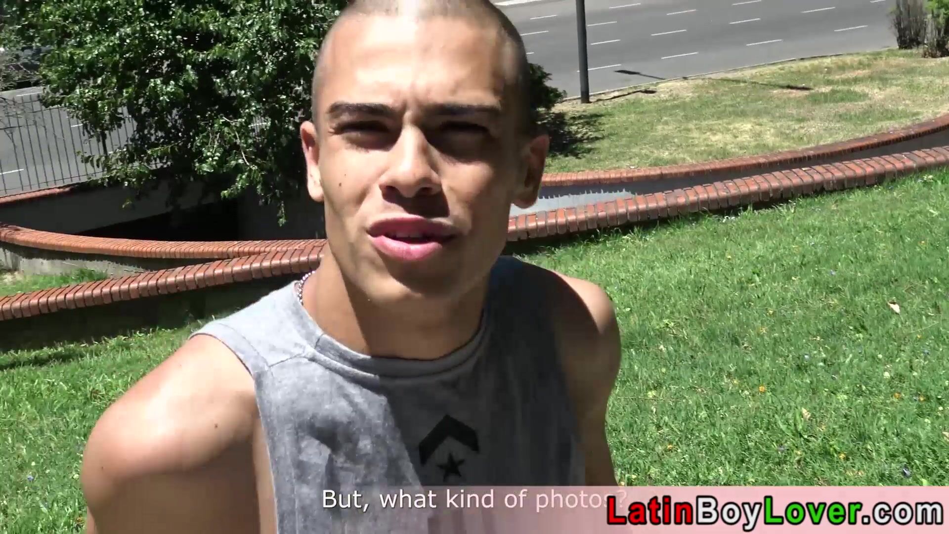 Skinny cute faced amateur latin teen Princeso taking a sunbath when a stranger Edipo comes and offering some money exchange a blowjob and a bareback fuck The big cocked twink accepting the cash and sucking his dick then lets him to bang him