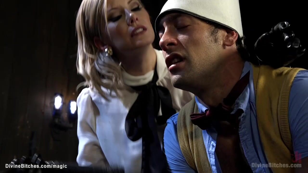 Slaveboy DJ returns to the Church of the Divine Bitches where sexy blonde femdom Maitresse Madeline Marlowe whips his ass then pegs him