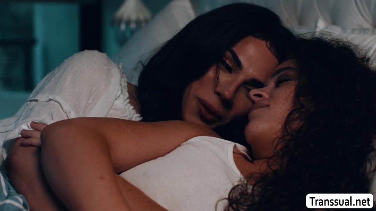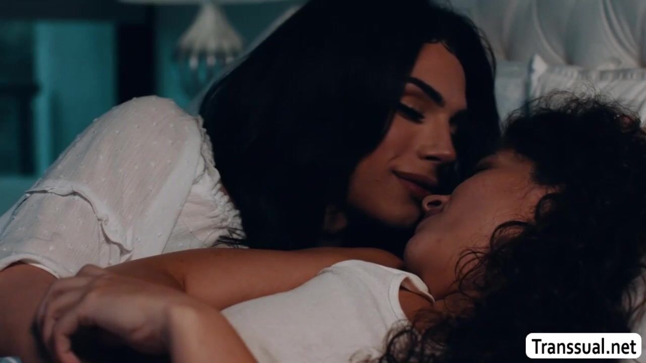 Horny stepdaughter and her shemale stepmom are on the bed cuddling to each other.After that,they start getting horny and kiss each other after.Next is,TS stepmom licks the pussy of her stepdaughter first and she then fucks it so hard.